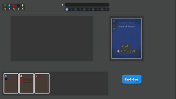 During Day: Action phase. You play cards, use actions on the cards to transmute essences.